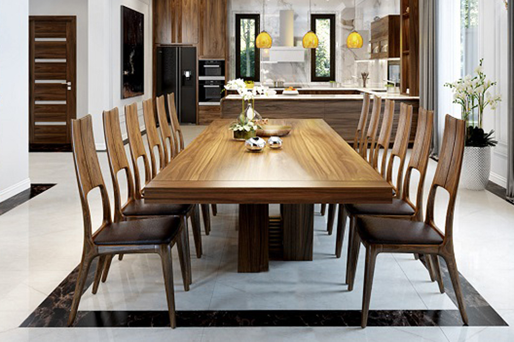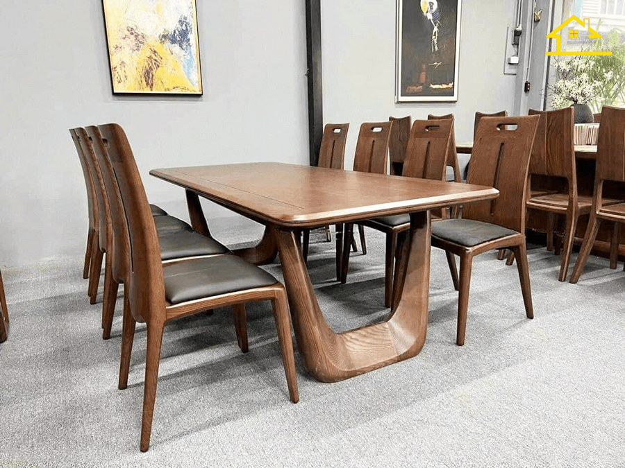 - Bộ Bàn Ăn Gỗ Sồi Tự Nhiên: Mang đến vẻ đẹp ấm cúng, gần gũi cho không gian bếp. Gỗ sồi tự nhiên có vân gỗ đẹp, màu sắc trang nhã. Ghế bọc da hoặc vải êm ái, thoải mái.
