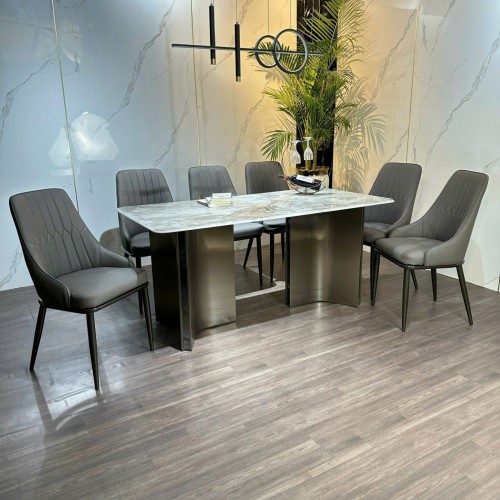 Bộ bàn ăn gồm bàn + ghế, nhập khẩu, sử dụng mặt đá nhân tạo gốc thạch anh – sang trọng mà vẫn bền chắc.
