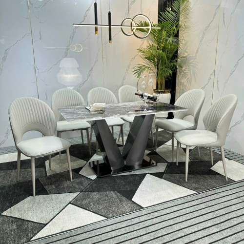Bộ bàn ăn gồm bàn + ghế, nhập khẩu, sử dụng mặt đá nhân tạo gốc thạch anh – sang trọng mà vẫn bền chắc.
