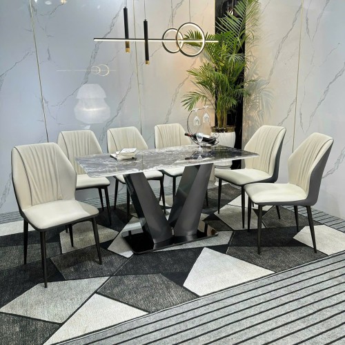 Bộ bàn ăn gồm bàn + ghế, nhập khẩu, sử dụng mặt đá nhân tạo gốc thạch anh – sang trọng mà vẫn bền chắc.