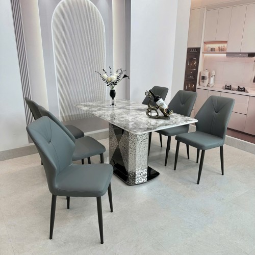 Bộ bàn ăn gồm bàn + ghế, nhập khẩu, sử dụng mặt đá nhân tạo gốc thạch anh – sang trọng mà vẫn bền chắc.