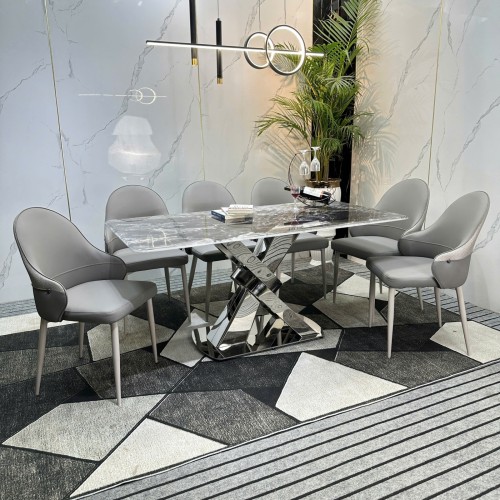 Bộ bàn ăn thạch anh 91 được thiết kế với sự tỉ mỉ trong từng chi tiết, từ mặt bàn đến chân bàn. Các đường nét được trau chuốt tinh tế, tạo nên sự hài hòa giữa phong cách cổ điển và hiện đại, phù hợp với nhiều không gian nội thất khác nhau.