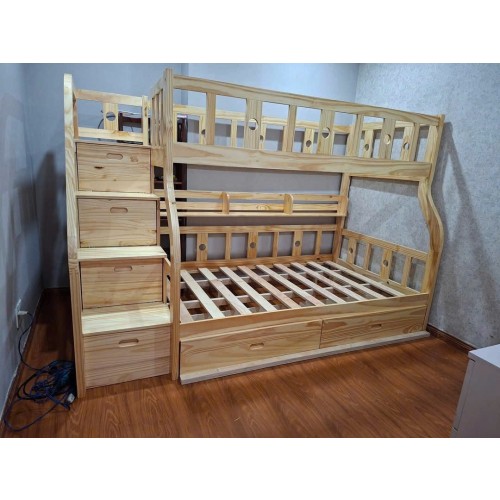 Hệ thống thang leo được thiết kế chắc chắn, các bậc thang rộng rãi và có rãnh chống trượt, đảm bảo an toàn tuyệt đối cho người sử dụng, đặc biệt là trẻ nhỏ. Lan can bảo vệ ở tầng trên cao và vững chãi, loại bỏ mọi lo lắng về việc rơi ngã trong quá trình ngủ. Ngoài ra, một số mẫu OH M2/M4 còn được trang bị thêm bánh xe có khóa, giúp việc di chuyển và cố định giường trở nên dễ dàng hơn, tăng thêm tính linh hoạt cho người dùng.