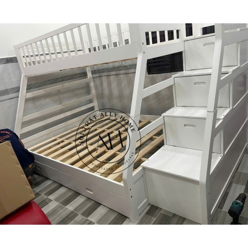 Điểm cốt lõi làm nên sự "thông minh" của AH192 m2 m6 chính là khả năng tích hợp đa chức năng. Không chỉ đơn thuần là hai giường ngủ xếp chồng, nhiều mẫu thiết kế của dòng này còn được bổ sung thêm các tiện ích đi kèm một cách khéo léo. Chẳng hạn, dưới gầm giường tầng dưới có thể có các ngăn kéo lớn để lưu trữ chăn ga gối đệm, quần áo hoặc đồ chơi. Bên cạnh đó, cầu thang lên tầng trên thường được thiết kế dưới dạng các hộc kéo tiện lợi, cung cấp không gian lưu trữ bổ sung mà không hề chiếm thêm diện tích. Một số phiên bản nâng cao còn có thể tích hợp bàn học liền kề, giá sách hoặc tủ quần áo nhỏ gọn, biến một góc phòng ngủ thành một không gian làm việc, học tập và nghỉ ngơi khép kín, vô cùng hiệu quả.