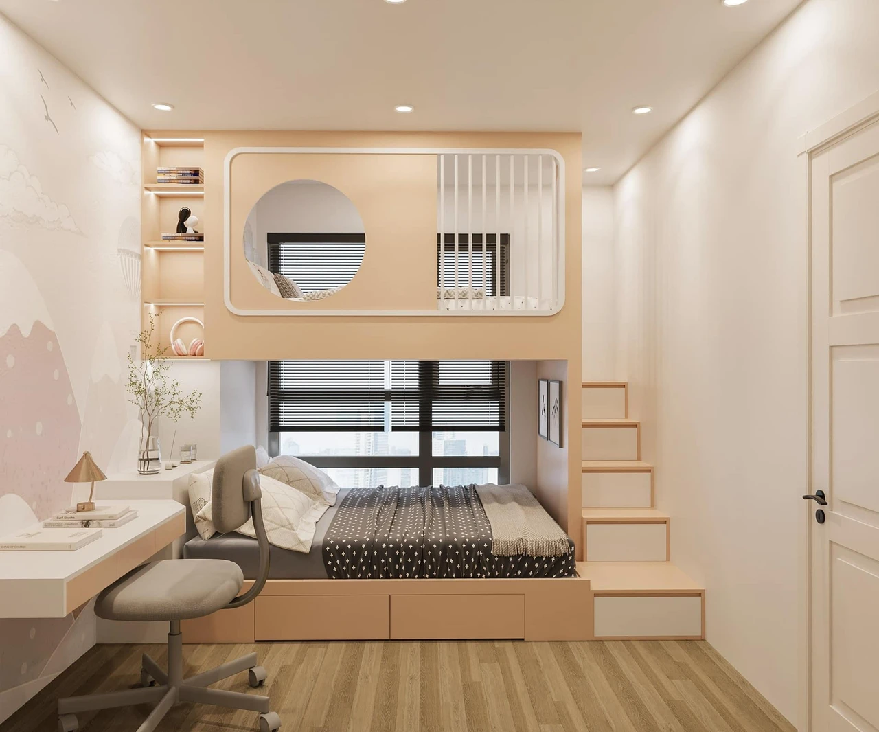 - Tiết kiệm không gian: Giường tầng là giải pháp lý tưởng cho những căn phòng có diện tích nhỏ, giúp giải phóng không gian vui chơi và học tập cho trẻ em.