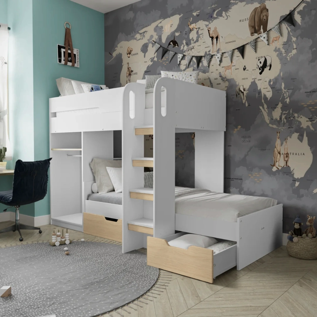 - Giường tầng có tủ đựng đồ: Tối ưu hóa không gian lưu trữ, giúp căn phòng luôn gọn gàng.